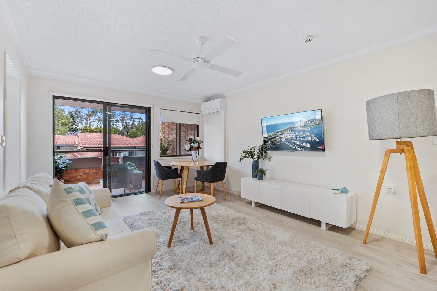 This well presented one-bedroom, air-conditioned apartment features a functional kitchen with spacious living and dining. Other features include a light and airy bedroom with built-ins, a combined bathroom/laundry and a private south facing balcony with views of the village. Apartment 318 is located on Level 3 with lift access to all communal facilities, which you are welcome to enjoy with family and friends.