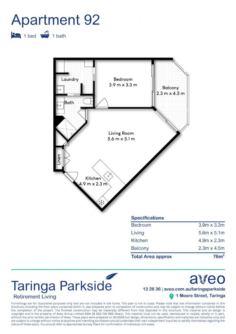 Disclaimer: Currently under refurbishment. Furnishings are for illustrative purposes only and not included in the unit.