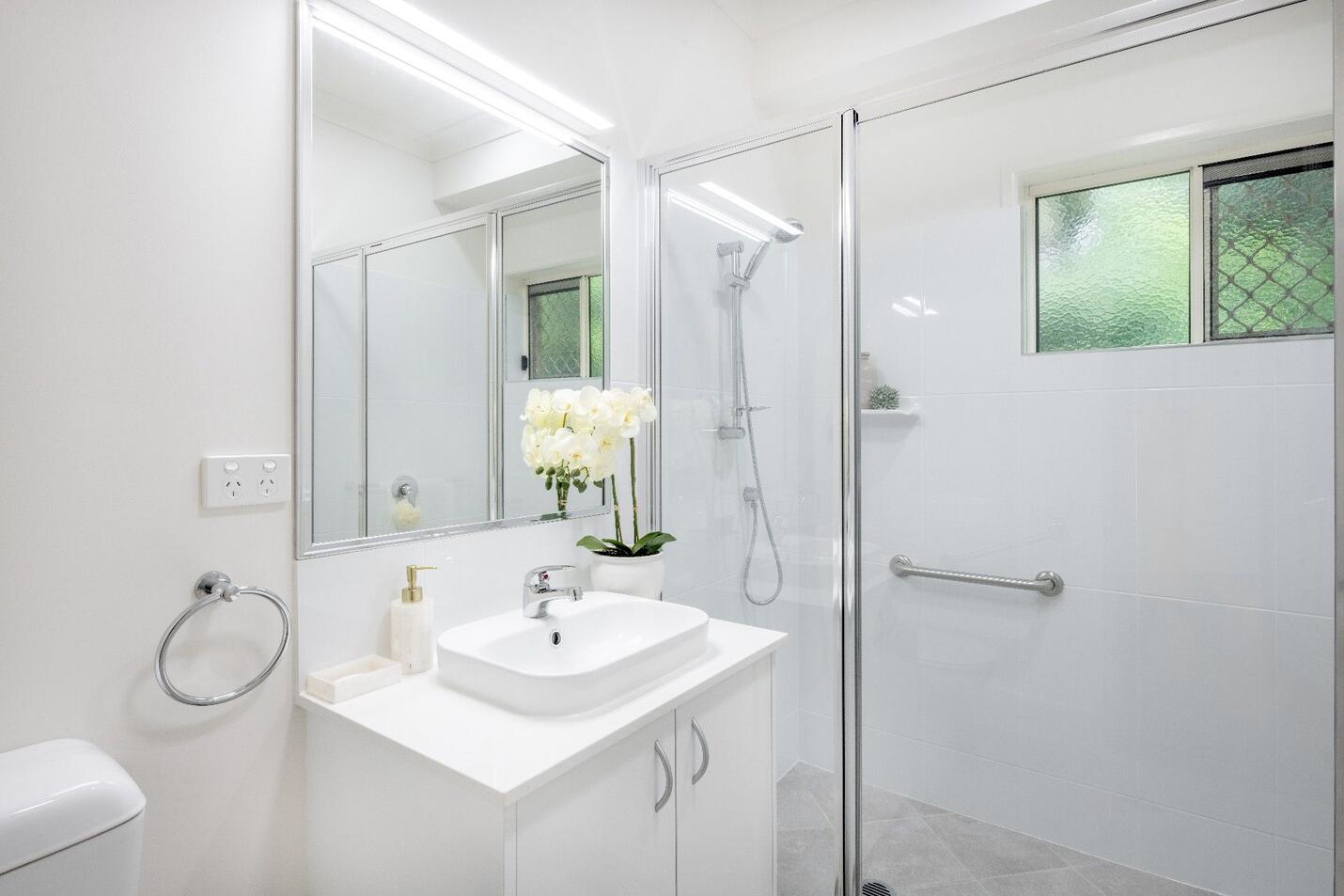 The villa features modern, easy to clean tiling to the living, dining and kitchen, with carpet in the bedrooms and study. All rooms are equipped with energy-efficient Daikin split system air-conditioning to keep you cool.