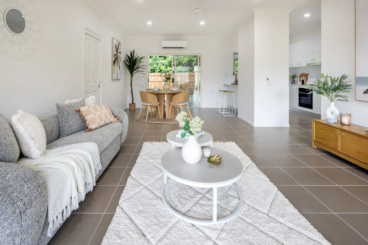 The villa features modern, easy care tiling to the living, dining and kitchen, with carpet in the bedrooms and study. All rooms are equipped with energy-efficient Daikin split system air-conditioning to keep you cool in summer.