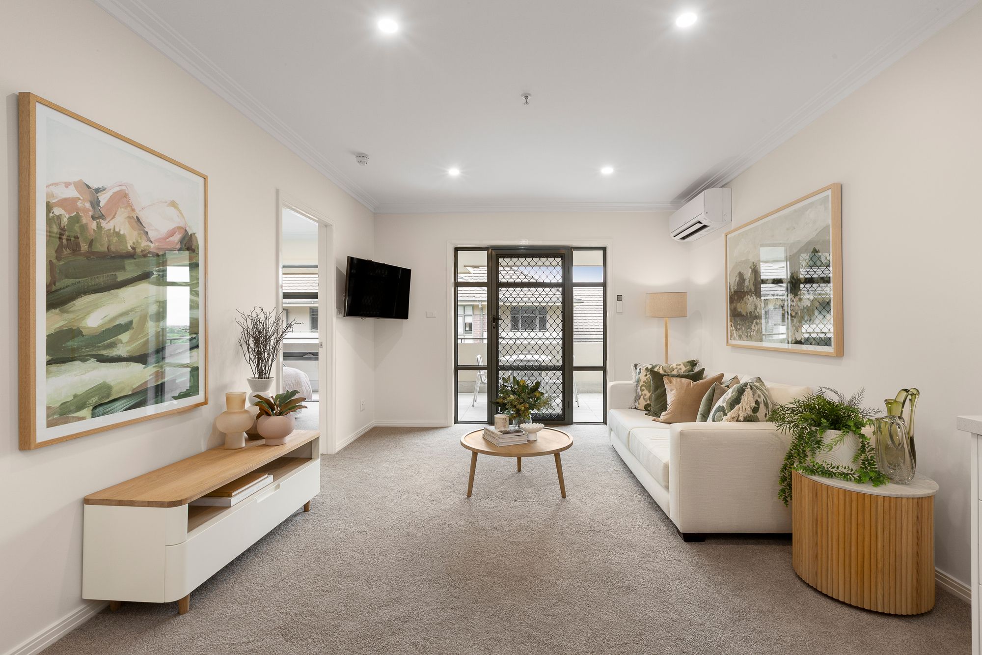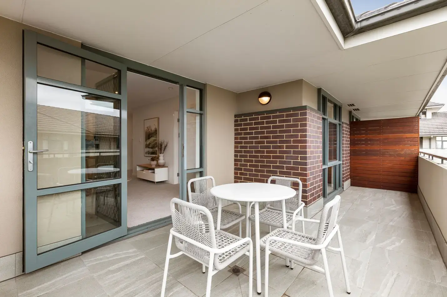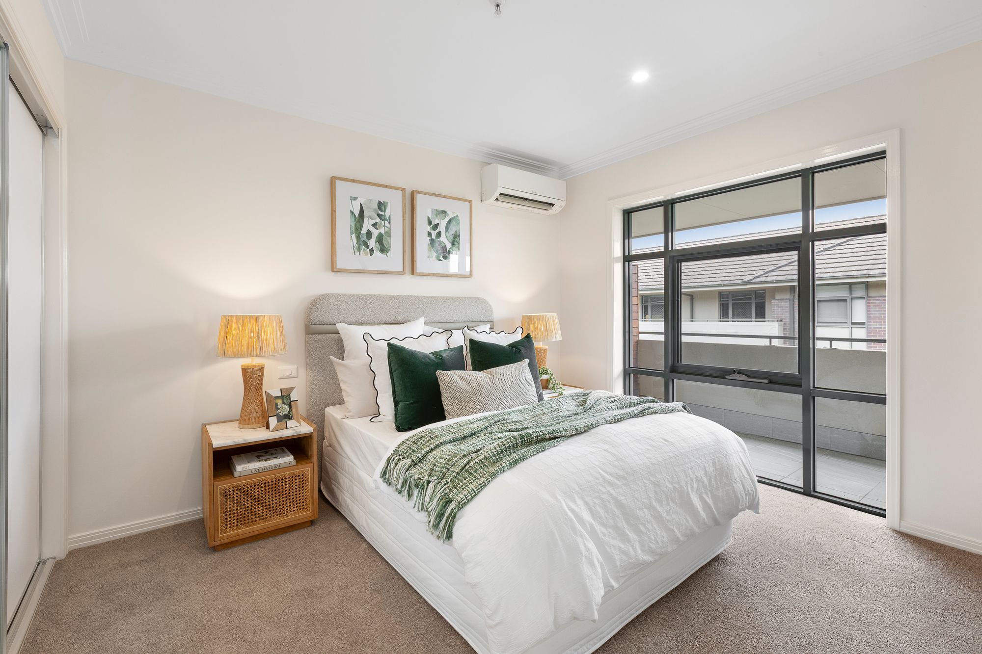 Additional highlights include a concealed laundry, neutral finishes throughout, and a private outlook framed by leafy trees.