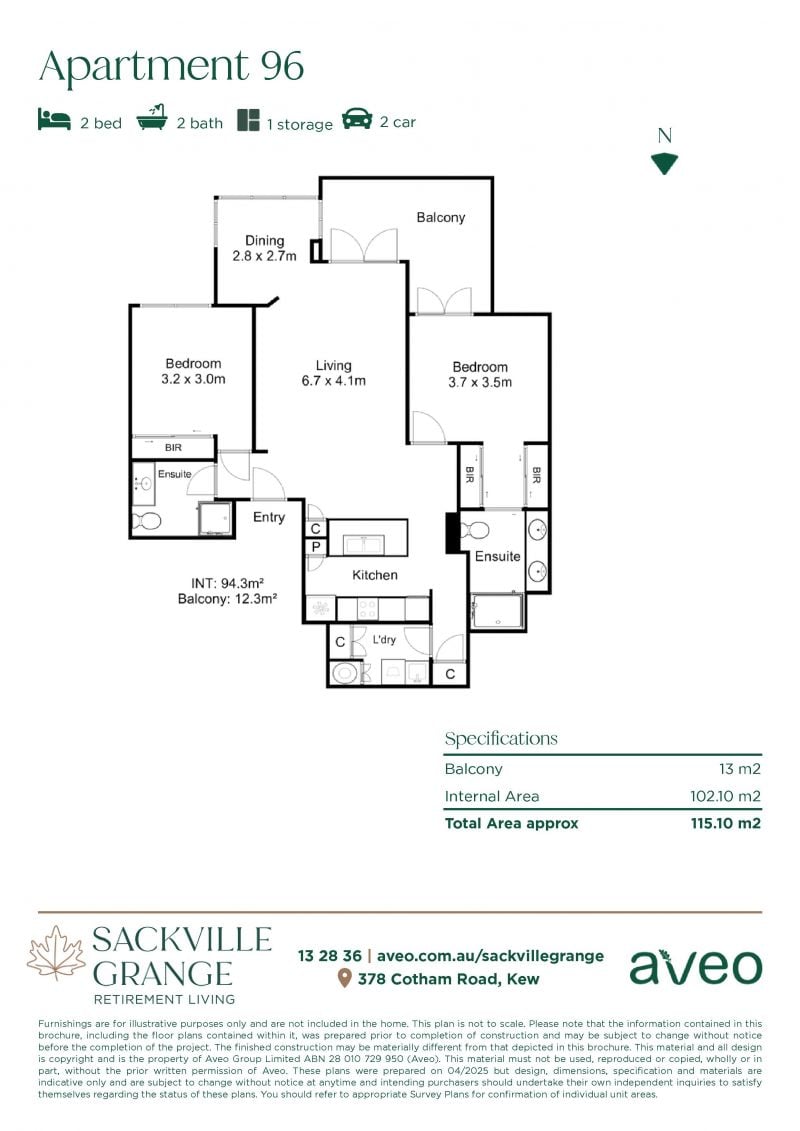This stylish and elevated apartment at Sackville Grange offers two bedrooms, two bathrooms, plus a study/dining room with a bright and sunny balcony.
